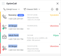 V rámci svého uživatelského rozhraní zobrazuje rozšíření OptimCall automaticky jména u telefonních čísel. Pokud číslo existuje v Pipedrive, použije se jméno daného kontaktu. V opačném případě si rozšíření vezme jméno z adresáře systému OptimCall.