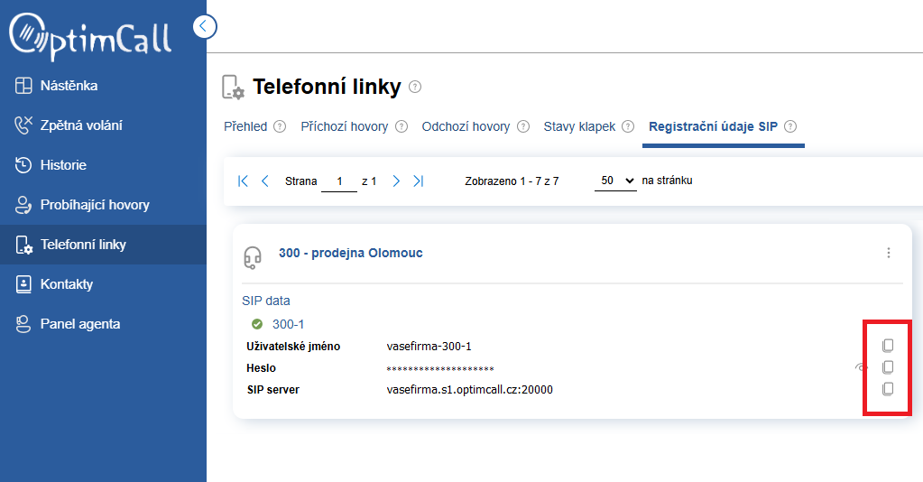 Pomocí ikony vpravo si můžete potřebný údaj zkopírovat do schránky.