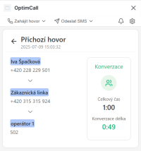 V rámci svého uživatelského rozhraní zobrazuje rozšíření OptimCall automaticky jména u telefonních čísel. Pokud číslo existuje v Pipedrive, použije se jméno daného kontaktu. V opačném případě si rozšíření vezme jméno z adresáře systému OptimCall.